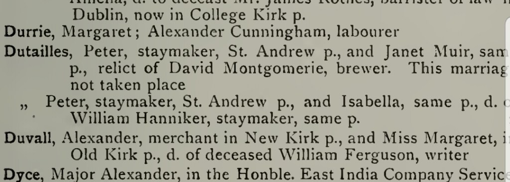 Just this week I finally found the explanation to that particular mystery about him …. in the record book of Scottish marriages from 1751 to 1800 for Edinburgh parish. What a bonus! His occupation is also listed, giving me hope that I can find more information about his early life in France.